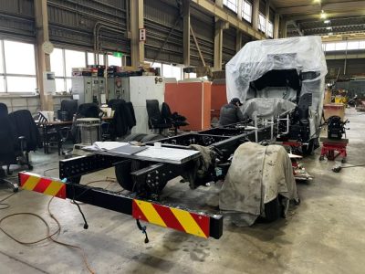 行燈の取り付けやキャブ内スイッチ取り付けなどの架装も行いました。